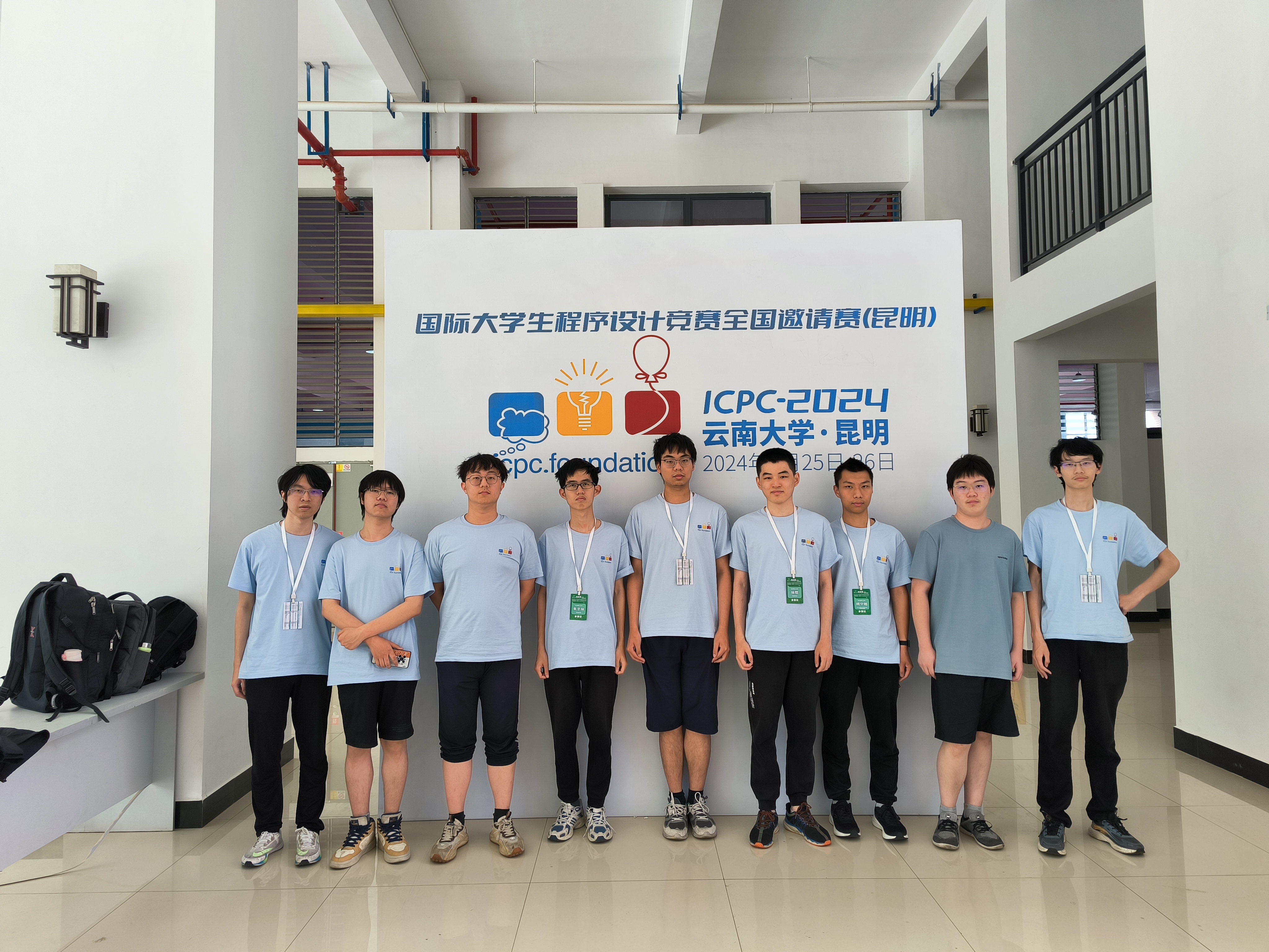 本次国际大学生程序设计竞赛(ICPC)全国邀请赛(昆明)共有来自上海交通大学、四川大学、电子科技大学等全国顶尖高校的二百五十余个队伍。由我校林恺、朱子林、邹知秋组成的“䙸悳砳鳏灮摶”队,梁思源、李昂、郑润哲组成的“锐刻六代”队成功夺得金奖,柯宁皓、张思哲、黄康组成的“Penalty这么高它的意思一定是分数吧”队夺得银奖。其中“䙸悳砳鳏灮摶”队取得了第二名的佳绩。