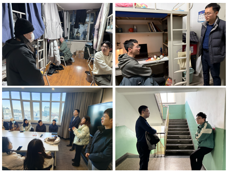 金年会jinnianhuicom副书记副院长包成刚及全体辅导员开展了宿舍走访、学生安全检查教育及假期去向排查等工作。全体辅导员深入学生宿舍进行了全面的安全隐患排查,排查工作包括用电安全、消防安全以及存安全隐患物品摆放等方面。检查过程中,辅导员也对学生的学习生活和假期出行等情况进行了全面了解,强调了返乡途中交通安全的重要性,关心提醒学生增强自我保护意识,并合理安排假期学习与生活。