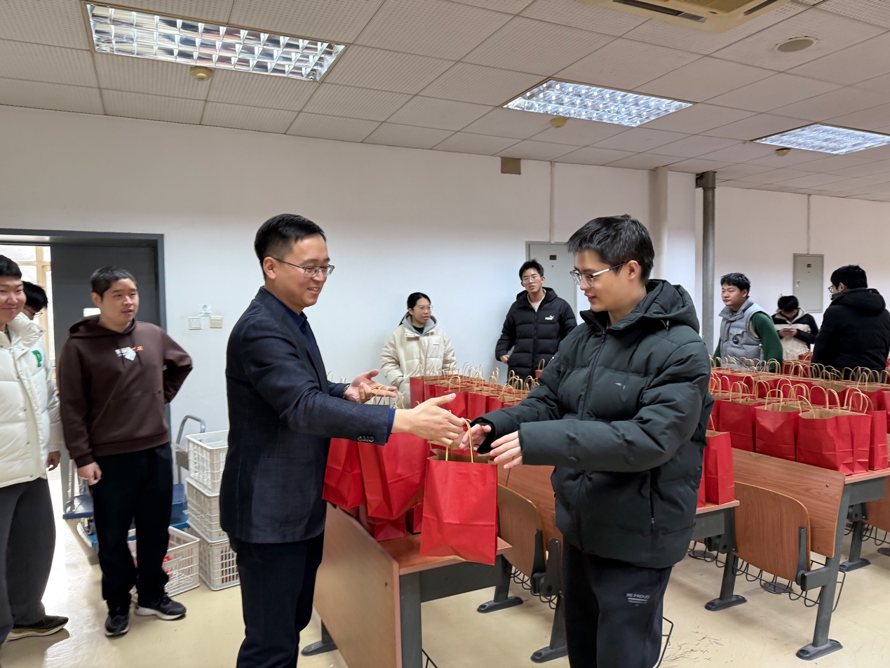 慰问会中,包书记发表了暖心致辞。他首先代表学院表示,各位领导始终关注学生成长发展,不仅提供学术上的支持,也致力于为学生营造温暖、有爱的学习环境。同时,他对考研学生长期以来的努力和坚持表示高度肯定,并鼓励大家保持信心与良好的心态,勇敢迎接考研挑战。他寄语学生们要坚定目标、合理安排作息,以最好的状态迎接考试,并衷心祝愿大家取得理想成绩。