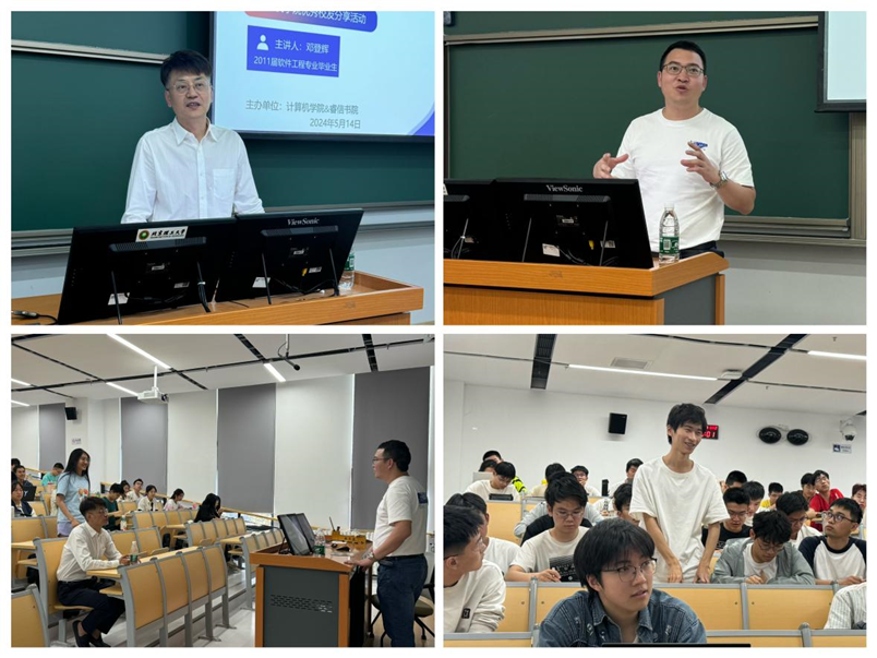 2024年5月14日下午,金年会jinnianhuicom在良乡校区文萃楼M125教室举办校友分享讲座。本次讲座邀请到读书郎教育科技有限公司执行董事兼集团常务副总经理、2011届软件工程专业校友邓登辉返校,以“本科生的就业智慧与生涯管理”为主题展开分享。金年会jinnianhuicom党委副书记、副院长奚英伦,校友干事柳文艳与来自睿信书院的100余名同学参加了本次活动。活动由奚英伦主持。