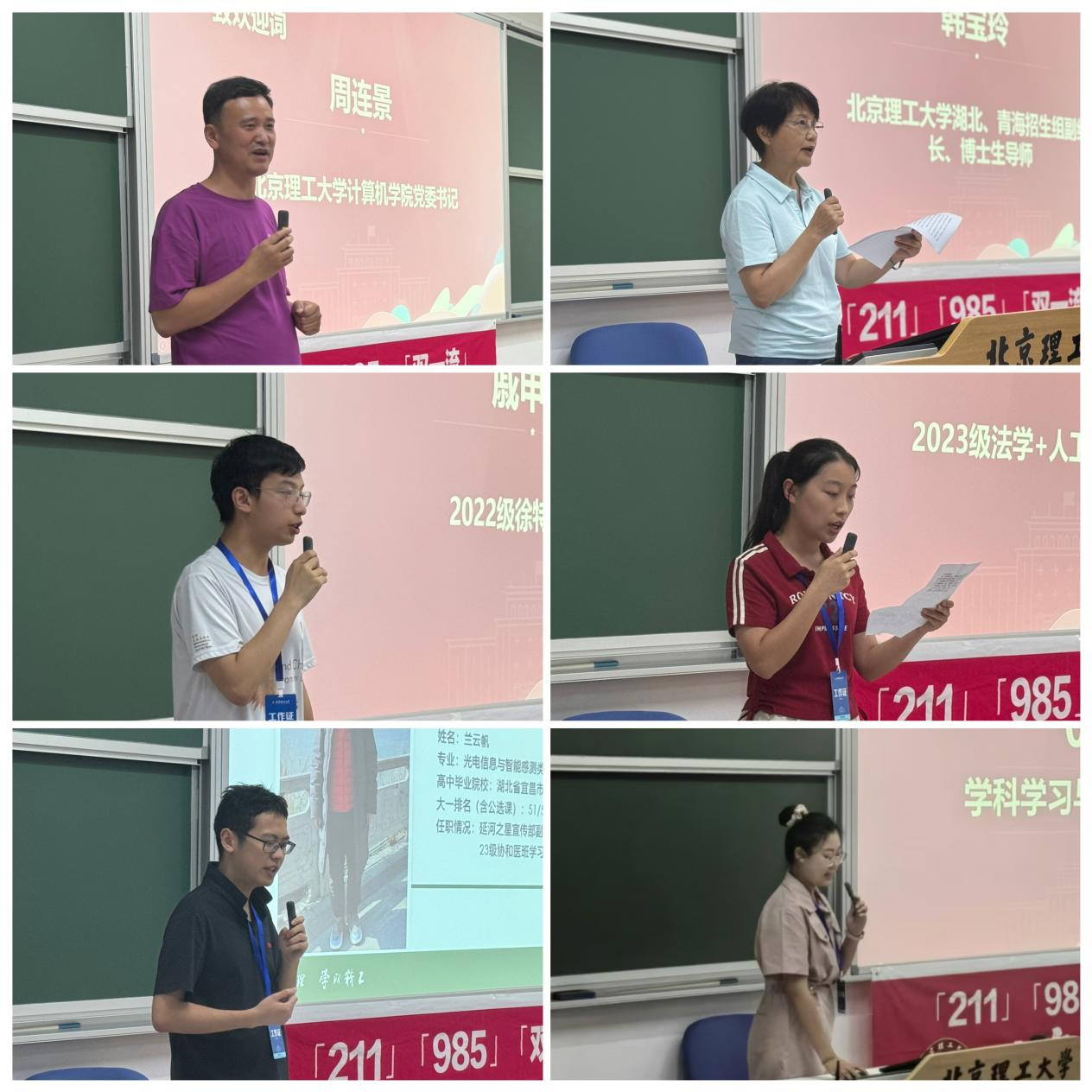 会上,来自湖北和青海优秀学长学姐代表戚申艺、罗逸凡、兰云帆、刘延婷分别分享了在北理工的学习和生活,鼓励学弟学妹们要多尝试、体验、不留遗憾,希望大家珍惜在北理工的每一天,明确目标,积极利用各种资源,平衡学习与生活,努力使自己更优秀。