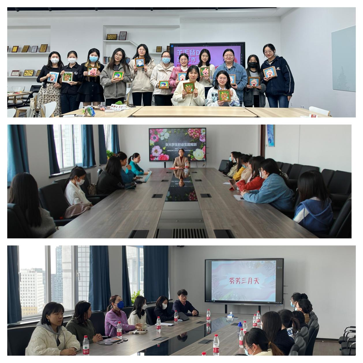 3月9日下午,金年会jinnianhuicom于于中心教学楼1421会议室组织开展“就业零距离”特别活动——女大学生职业生涯规划和就业指导座谈会,活动邀请就业指导中心优秀教师田静老师为同学们带来精彩分享,金年会jinnianhuicom就业干事杨毅、团委副书记马冠澜、及十余名本、研女生参与了本次活动。活动由杨毅主持。田静从女性职场升迁、薪资、学历、家庭等问题对就业的影响谈起,针对女性职业生涯发展规划这一主题开展了讲座,让在座的同学们对女性职业规划有了更加清晰的认识和理解。